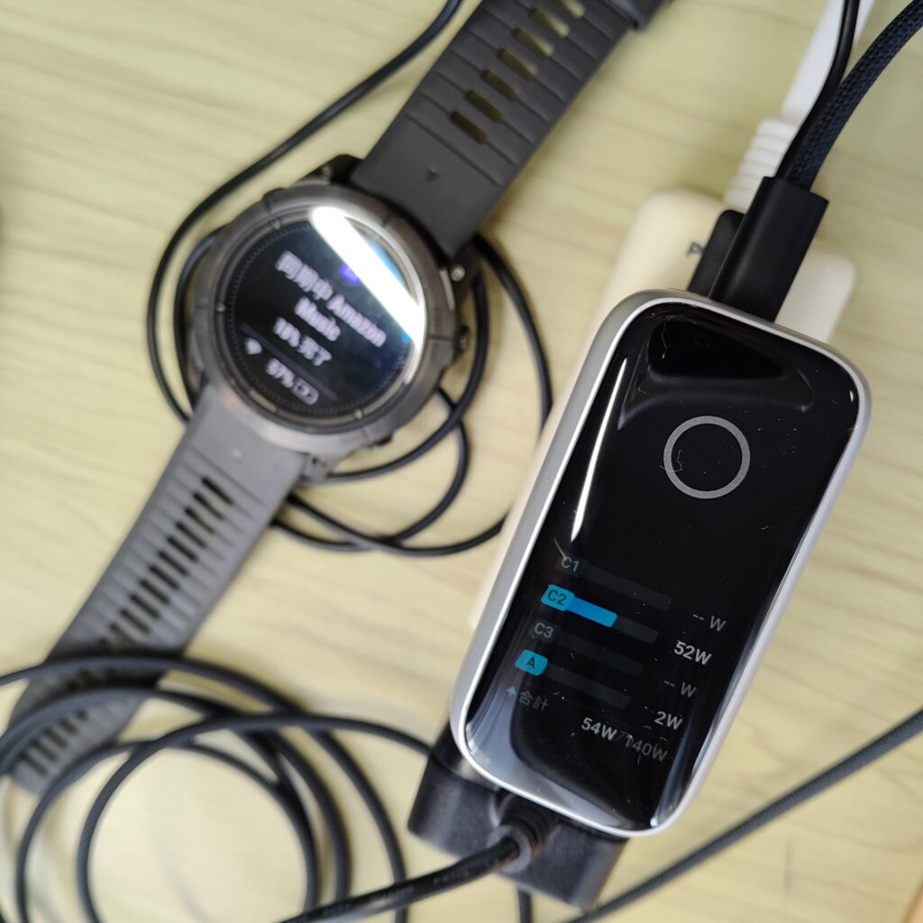 現在、私の使っている機器の最大充電スペックは、スマホの急速充電が65w、PCは最大96w、スマートウォッチは5wくらいです。これらを全て一度に充電することはあまりないですが、一番大きいのがPCの96wになります。