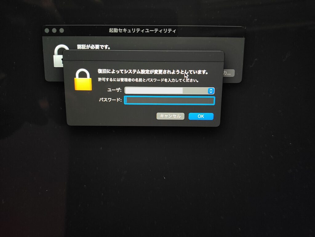 そして、とどめに「起動セキュリティユーティリティ」で3度目の心が折られます。起動セキュリティーの設定を記録するのが現在のインストールされているOSになるので、MacintoshHDボリュームの内容のフォーマットをしてインストールのために再起動という手順でやってしまうと、外部起動OKにした記録も消された状態に逆戻りするので、外部USBを選択できなくなります。まぁ、あたり前なのですが、うっかりやってしまうと、もう一度現行のOSのインストールからやり直しになります。私も3度やらかしました。コレが一番時間かかった〜。そんなこんなでトラップがいくつかありますが、手順に沿って行えば難しくはありません。