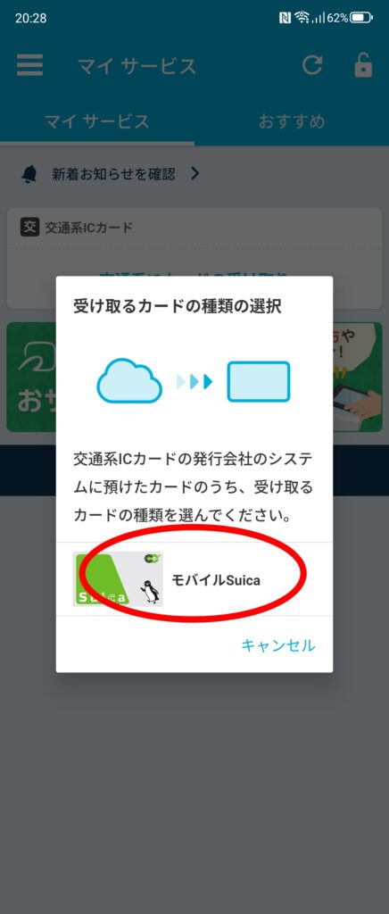 新しいスマホ側で「おサイフケータイ」アプリを起動します。