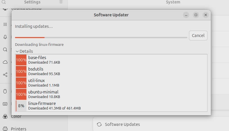 Ubuntu のアップデートは、ウインドウが出ていても一旦スルーしておいてください。
